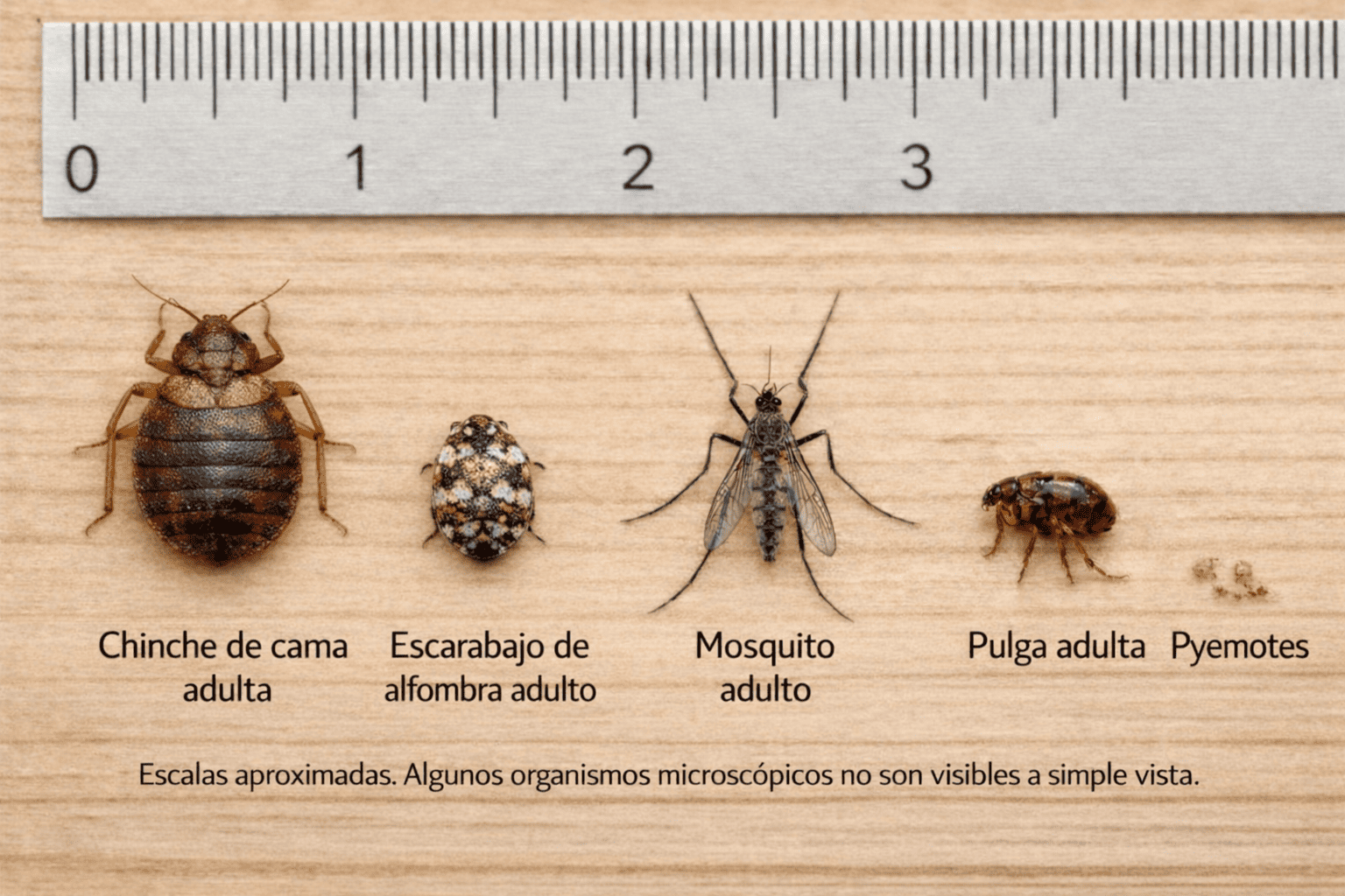 A esta confusión se suma la presencia posible de otros organismos que no son chinches, como los antrenos (escarabajos de las alfombras), cuyas larvas pueden provocar irritaciones cutáneas, o ácaros del género Pyemotes, responsables de lesiones muy pruriginosas sin que exista infestación de chinches. Todo ello genera incertidumbre, miedo ante lo desconocido y un elevado nivel de estrés. Por este motivo, basarse únicamente en la observación o en las reacciones cutáneas no es fiable, y la detección profesional es la forma más segura de obtener una respuesta clara.